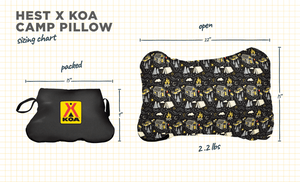 The best camping pillow is designed to provide home-pillow comfort with shredded memory foam but in a compact, portable adventure-ready package. The HEST X KOA Camp Pillow has a ton of technical features and tidy details wrapped into a tiny portable pillow package. It's durable, clean, and best of all, ready to go anywhere your head goes. Perfect for sleeping on airplanes, road trips, KOA cabins, tent camping, RVs, van life, or for nightly use. The temperature resilient memory foam will keep your head in the clouds while the durable and pack-into-itself feature will keep it clean while you play.