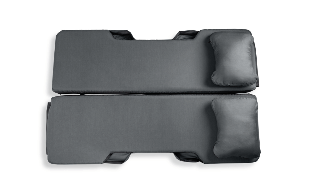 Designed specifically for use in a Rivian R1S, the Foamy for R1S by HEST rolls in style. Transporting perfectly in the frunk, it deploys into a perfectly shaped memory foam bed in the back of the Rivian R1S complete with curved cut outs that fit seamlessly around the wheel wells. Utilizing two layers of temperature resilient memory foam, the Foamy for R1S is a single mattress, but link two together to maximize the space and create a comfortable double bed for two. Each Foamy for R1S features an oversized pocket on the side to store your phone, Rivian key card, and other small stashables.